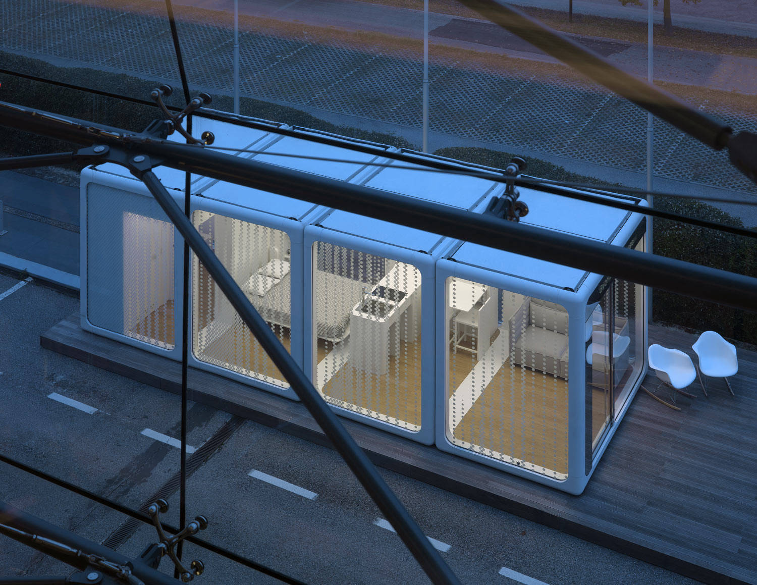 NOMAAD Living units include bathroom, bedroom, kitchen modules and full HVAC
