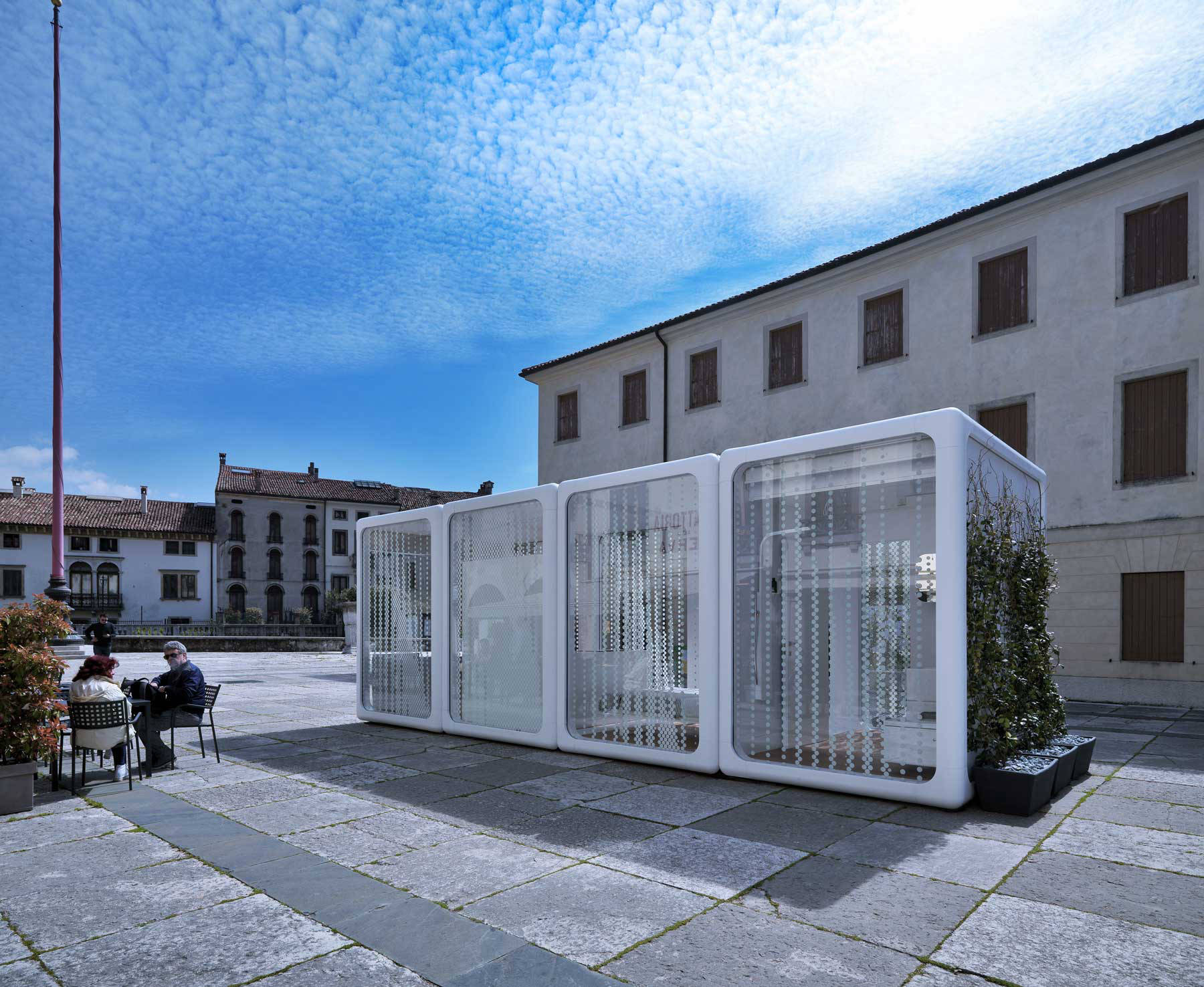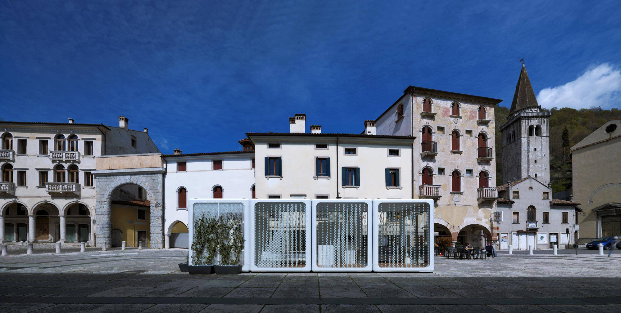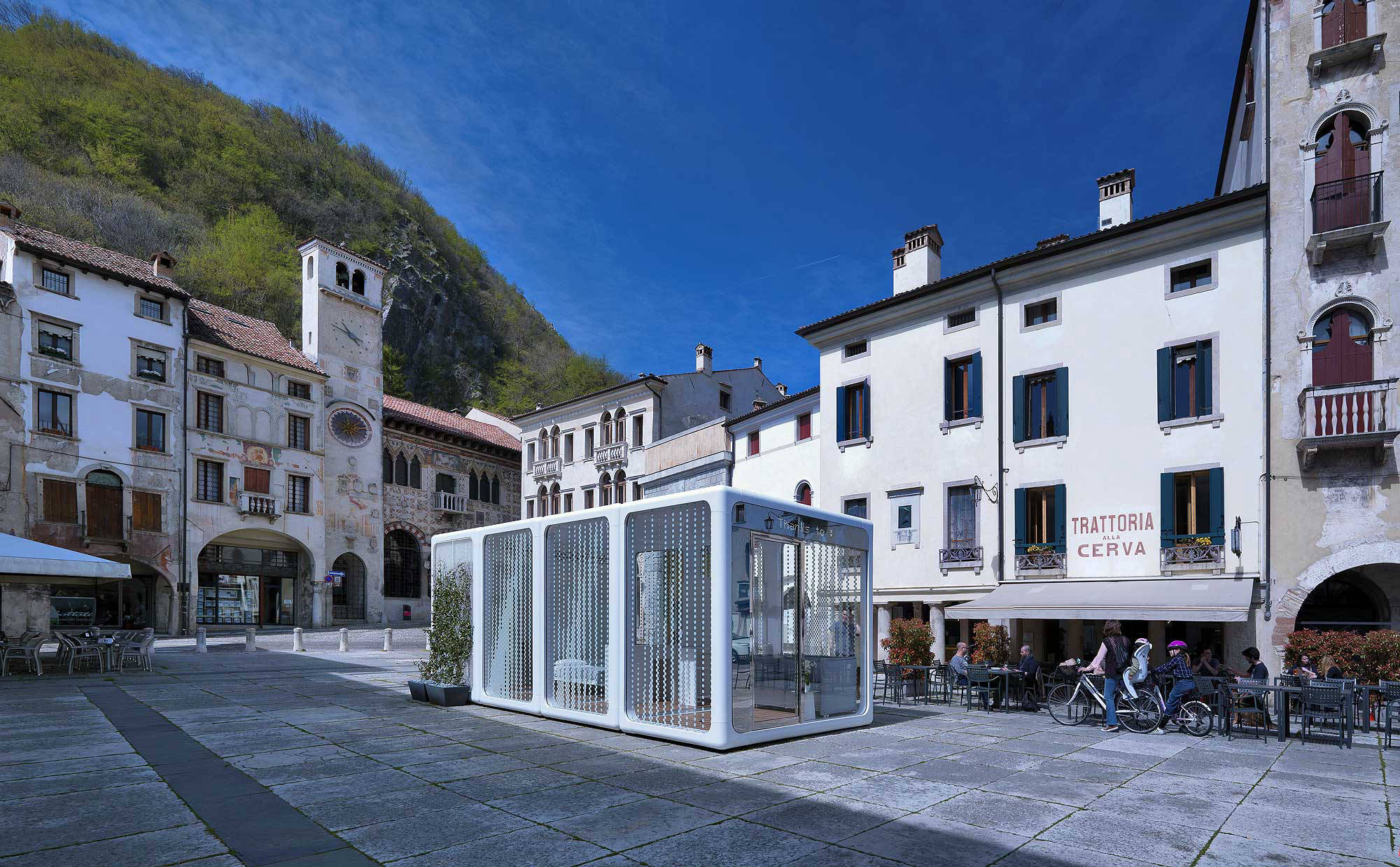 We designed our unique NOMAAD modular system so that it can be transported in standard international shipping containers and moved to your site on regular flatbed trucks. We delivered a NOMAAD unit to Piazza Flaminio in Vittorio Veneto, Italy and if we found our way through the narrow streets of an ancient Italian town, we're pretty confident we can get NOMAAD to your site of choice.